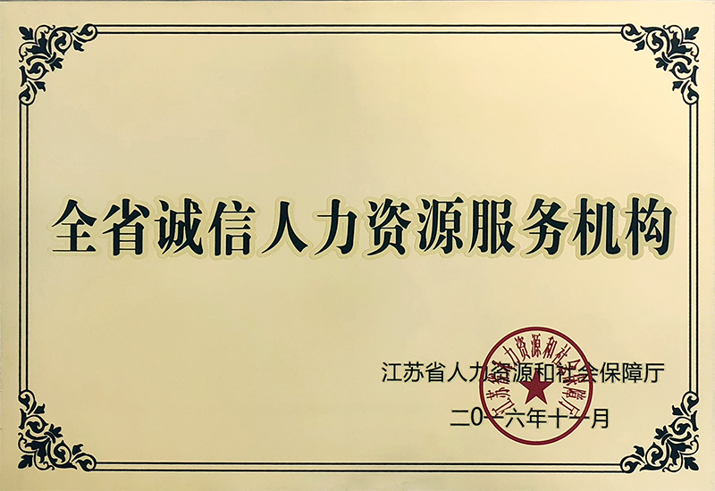 “江蘇省誠信人力資源服務(wù)機(jī)構(gòu)”、“江蘇省工人先鋒號”等多項榮譽(yù)稱號。
